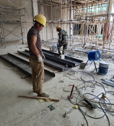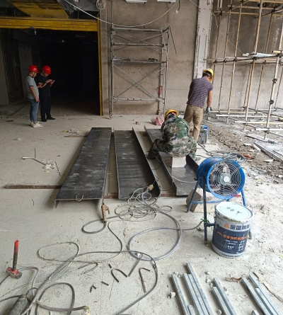 结构柱包钢加固钢板打磨钢板表面:对钢板进行除锈处理,打磨至金属光泽,同样用丙酮擦拭干净,保证表面无杂质。
